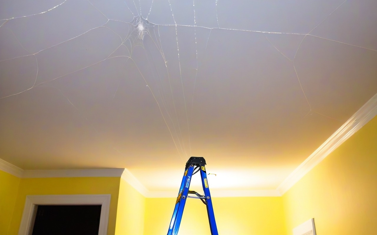 Методы удаления паутины с потолка без стремянки