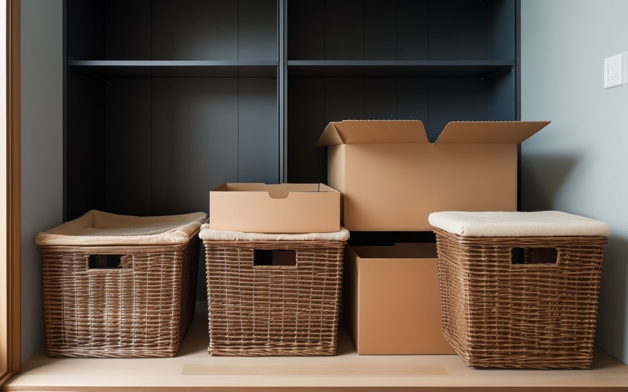 Какие преимущества имеет использование ящиков и корзин для организации хранения вещей?